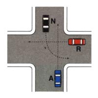 [24025_08] Nell'incrocio rappresentato nella figura il veicolo N ha la precedenza rispetto al veicolo ACategoria: 14. Esempi di precedenza (ordine di precedenza agli incroci)Falso