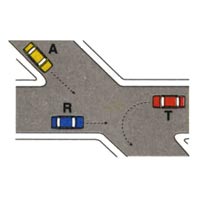 [24029_04] Nell'incrocio rappresentato nella figura il veicolo T deve attendere il transito dei veicoli R ed ACategoria: 14. Esempi di precedenza (ordine di precedenza agli incroci)Vero