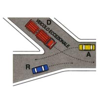 [24040_04] Nell'incrocio rappresentato in figura i veicoli transitano nel seguente ordine: D, A, RCategoria: 14. Esempi di precedenza (ordine di precedenza agli incroci)Falso