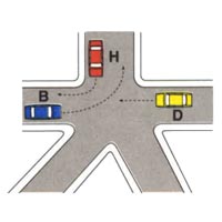 [24045_01] Nell'incrocio rappresentato in figura i veicoli disimpegnano l'incrocio nel seguente ordine: H, D, B