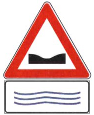 [20014_03] Il segnale raffigurato indica che la strada si può allagare in caso di forte pioggiaCategoria: 10. Pannelli integrativi dei segnaliVero